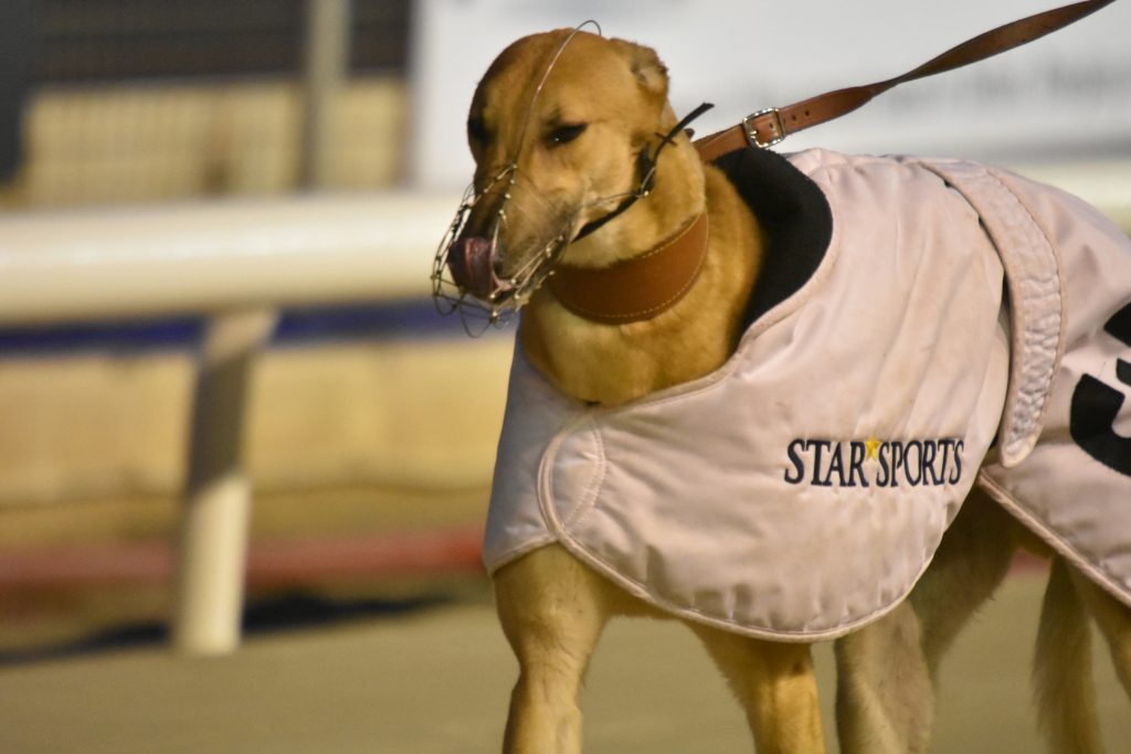 Romeo Superstar (L. Tuffin) confirmed that he was far too dominant to remain in A3 company at Towcester on Monday morning, winning the 11:01 (500m) in devastating style. After winning the battle for the rail with the two dogs on his inside, this was a procession. Despite the even break, ‘Romeo’ had enough early pace to avoid any trouble at the first bend with only Dablondereturns in Trap 4 able to keep pace with him.