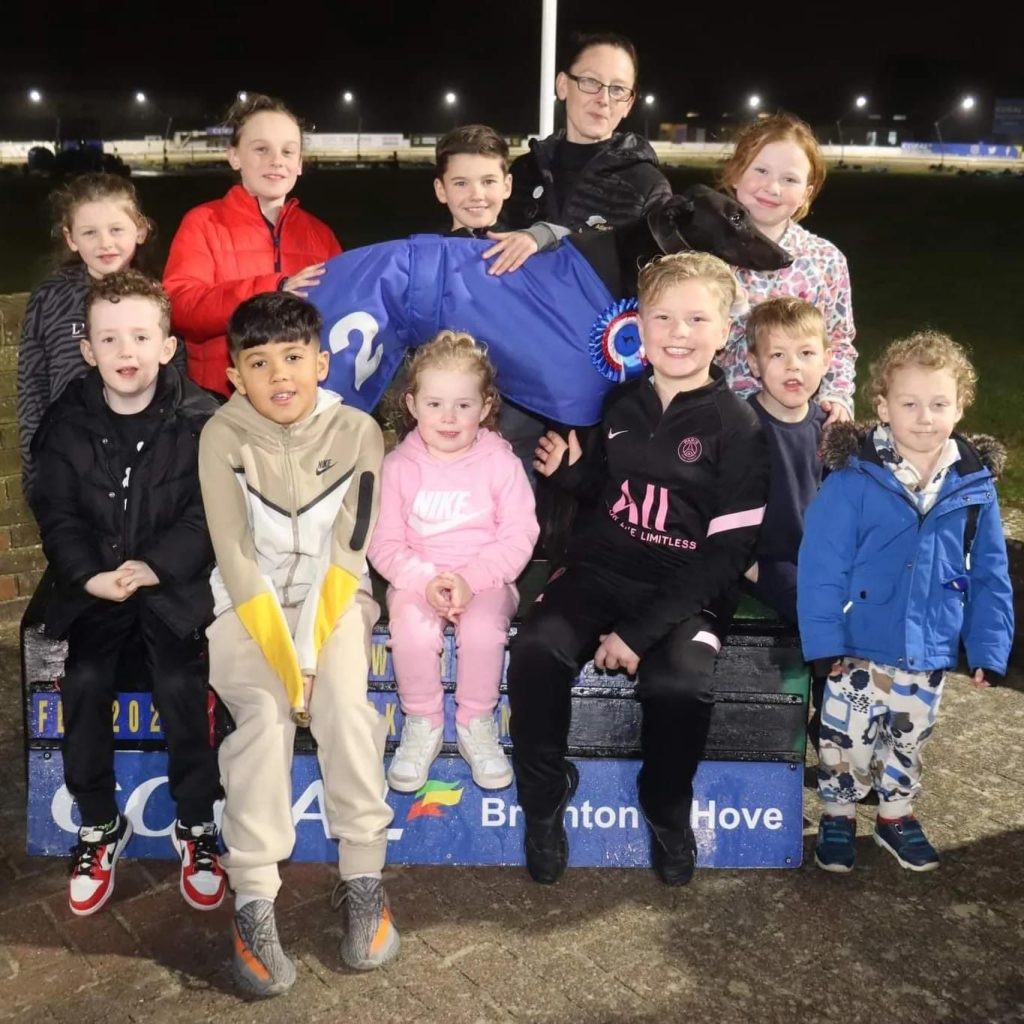 When they began the family ‘Meet and Greets’ I was lucky enough to be directly involved myself , Its a great success with plenty of families getting involved to have their moment with a greyhound . I remember a Thursday evening with one of our own greyhounds ‘Slippery Maia’ being the greyhound selected for the event , after her race we made our way to the podium only to see a que formed all the way down the brick wall ( that surrounds the trackside) it was amazing , Maia took it all in her stride and was patient while groups of children and families made their way to meet her , what’s great is its not just a photo , so many questions are asked about racing greyhounds from what do they eat, to how fast do they run and how can we adopt a retired racer !!! Its a great chance to show off racing greyhounds and get those all important points out there to the wider community.