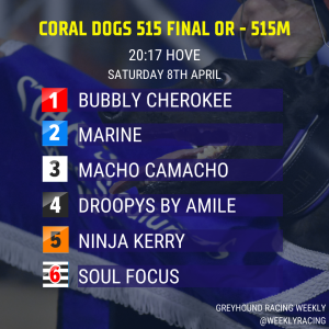 Droopys By Amile set to do battle with Ninja Kerry in the Coral Dogs 515 Final at Hove tonight